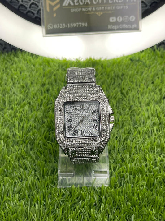 CARTIER Iced Out Luxury Stainless Steel Made Analog Watch For Men